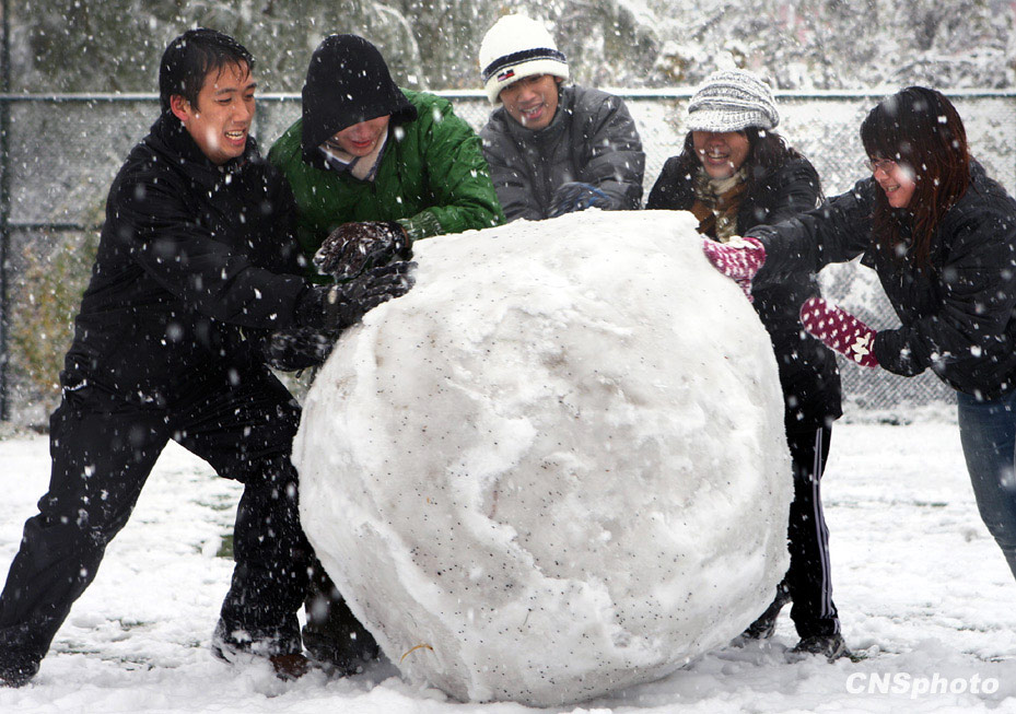 11月1日農(nóng)歷九月十五,尚未立冬的北京受強冷空氣影響大雪紛飛銀裝素裹,幾名來自赤道印尼的年輕人滾起碩大的雪球享受罕見的雪中樂趣。受強冷空氣影響,北京從昨天夜間開始出現(xiàn)小雨,今天凌晨轉(zhuǎn)為大雪,午后降雪逐漸減弱。根據(jù)過去50年的數(shù)據(jù)統(tǒng)計,北京地區(qū)常年出現(xiàn)初雪的時間在每年的11月29日左右,今年的初雪時間提前了整整一個月。中新社發(fā) 任晨鳴 攝