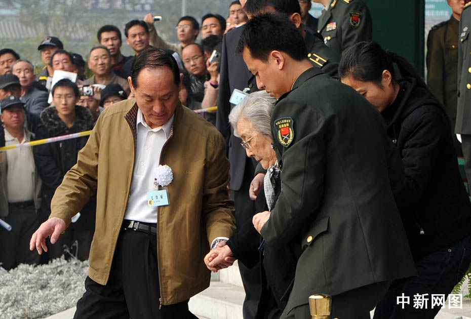 11月6日,“中國(guó)航天之父”錢(qián)學(xué)森的追悼會(huì)在北京八寶山舉行。圖為錢(qián)學(xué)森夫人蔣英送別丈夫。中新網(wǎng)記者 金碩 攝