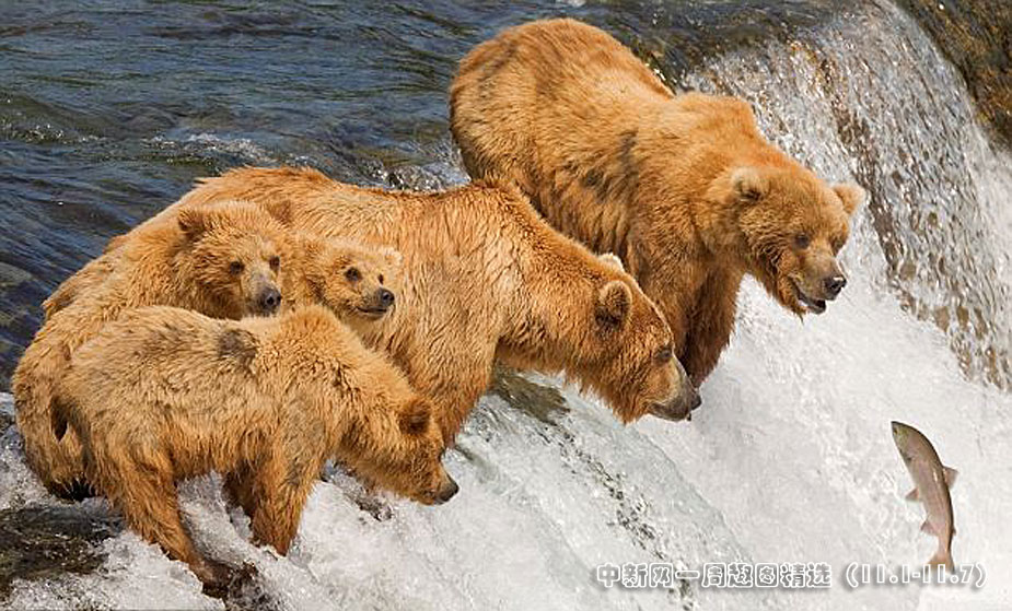 近日,美國(guó)阿拉斯加的卡特邁國(guó)家公園一只灰熊媽媽教授她的三個(gè)熊崽捕魚(yú)。圖片來(lái)源:中國(guó)國(guó)家地理網(wǎng)>>點(diǎn)擊觀看詳細(xì)內(nèi)容