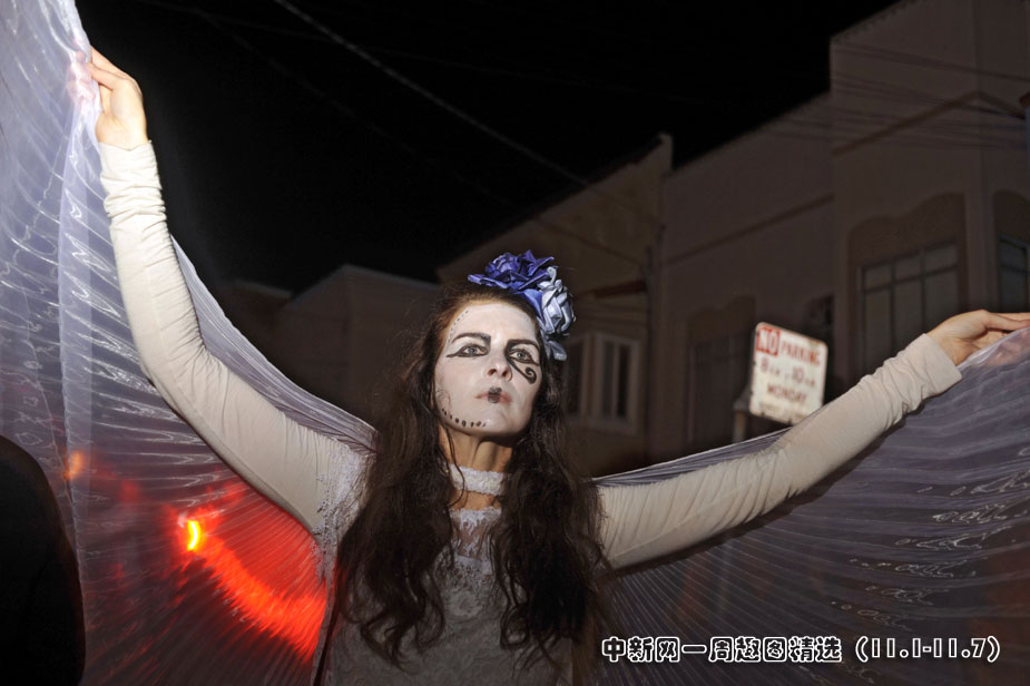 11月2日,美國舊金山居民扮成鬼怪模樣慶!巴鲮`節(jié)”。>>點(diǎn)擊觀看詳細(xì)內(nèi)容