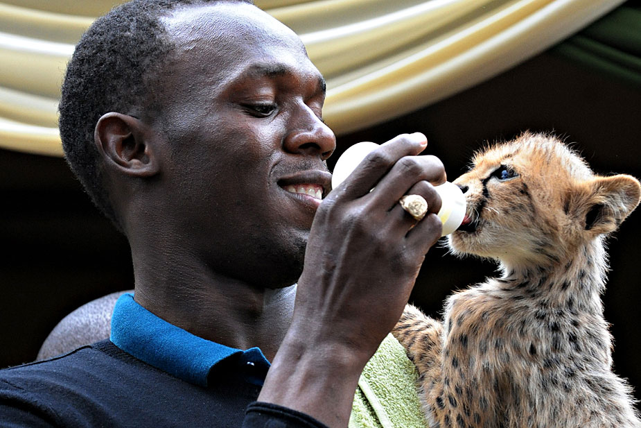 周一(2日),牙買加“飛人”博爾特在肯尼亞野生動物中心收養(yǎng)了一只3個(gè)月大的小獵豹,并給其取名為“閃電博爾特”。來源:中國新聞網(wǎng)