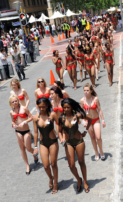 11月7日,南非女性著比基尼沿著梅爾羅斯門大道游行了1690米,在打破吉尼斯世界記錄的同時(shí)提醒婦女提高防范乳腺癌的意識(shí)。圖片來(lái)源:中國(guó)新聞網(wǎng)