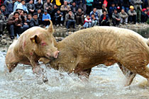 罕見“斗豬”比賽