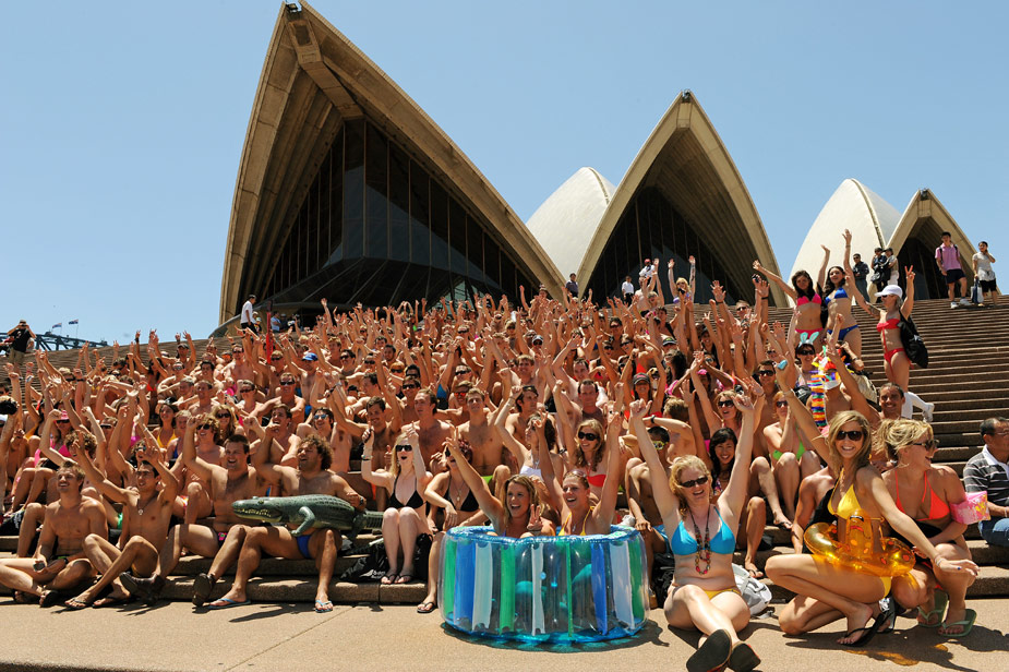 11月12日,約1000人身穿泳裝在悉尼街頭游行,欲打破287人近日在南非創(chuàng)造的最大規(guī)模泳裝游行的世界紀(jì)錄。圖片來源:中國新聞網(wǎng)