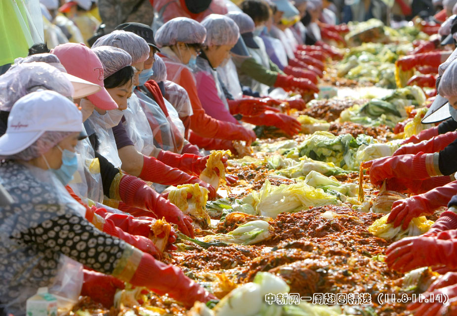 11月9日,約2700名韓國志愿者在首爾一所學(xué)校的操場上制作泡菜。>>點(diǎn)擊觀看詳細(xì)內(nèi)容