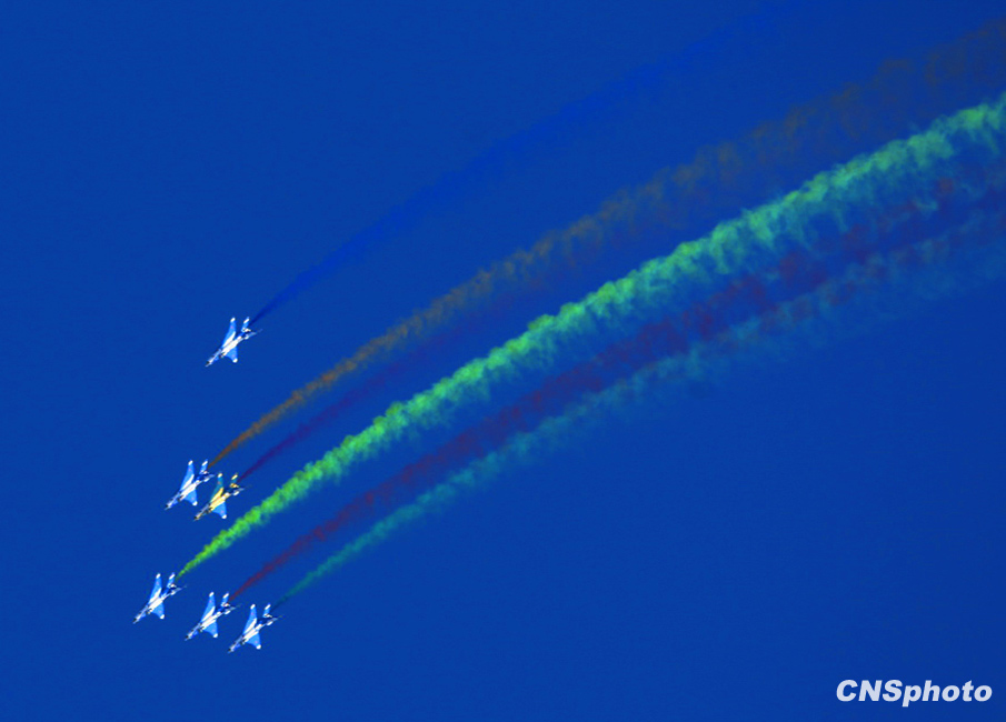 慶祝中國人民解放軍空軍成立60周年飛行表演,11月15日上午在北京沙河機(jī)場舉行。表演按八一飛行表演隊(duì)4架殲-10飛機(jī)表演12個(gè)動作和6架殲-7GB飛機(jī)表演15個(gè)動作,分四機(jī)對頭交叉、四機(jī)菱形隊(duì)大坡度盤旋、單機(jī)小速度平飛等27個(gè)動作,其中四機(jī)對頭交叉動作是這次表演中技術(shù)難度較大的動作之一,這是國產(chǎn)三代飛機(jī)和國產(chǎn)二代飛機(jī)首次同場競技表演。圖為殲-7GB進(jìn)行表演。中新社發(fā) 宋吉河 攝