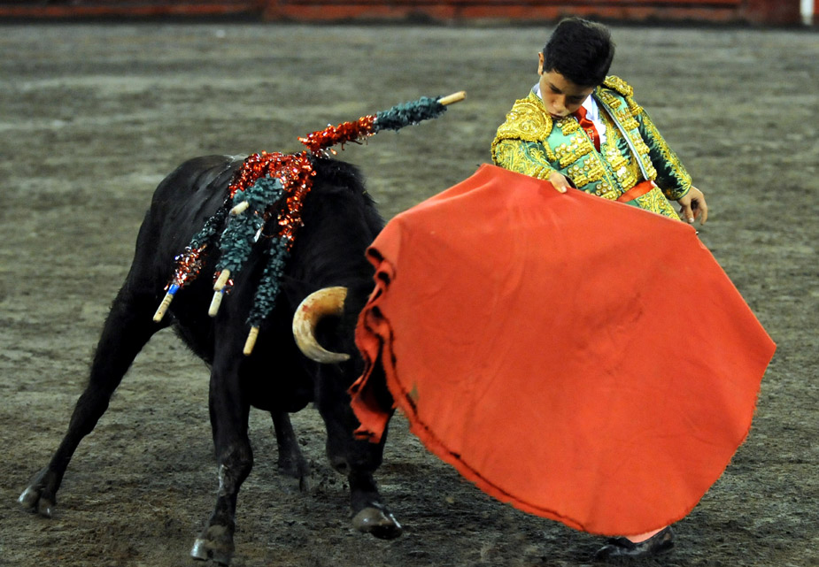 近日,哥倫比亞的一位13歲的小斗牛士在哥倫比亞的豐碑競技場參加斗牛大賽。圖片來源:中國新聞網(wǎng)