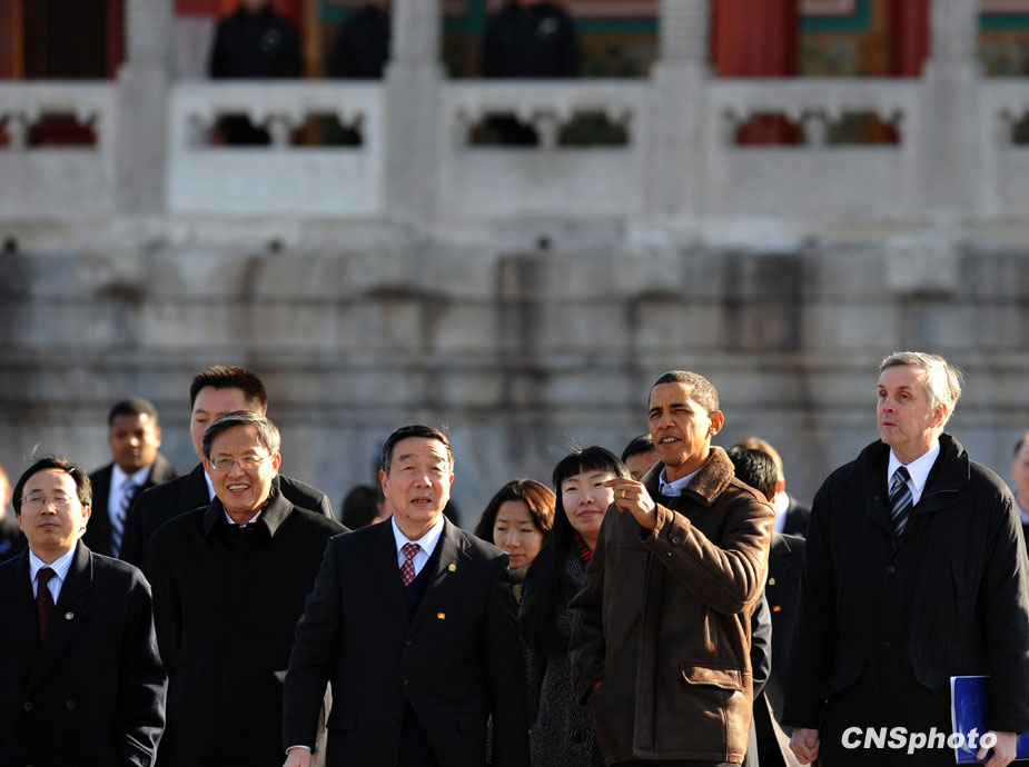 11月17日,正在中國進行國事訪問的美國總統(tǒng)奧巴馬一行參觀北京故宮。中新社發(fā) 廖攀 攝