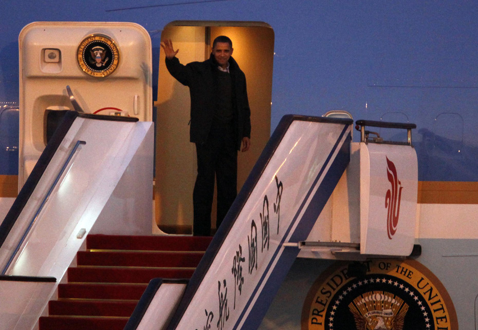 11月18日,北京首都國際機場,美國總統(tǒng)奧巴馬結(jié)束訪華行程乘坐專機離開北京。