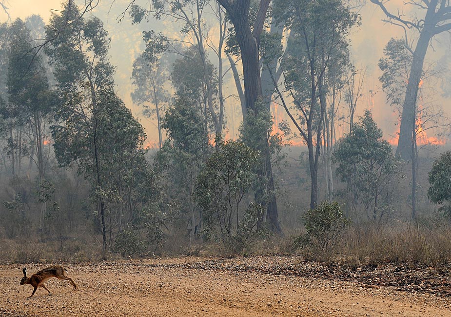 11月22日,澳大利亞東部悉尼西北部地區(qū)因高溫發(fā)生森林大火,當?shù)鼐用癖黄瘸冯x。圖片來源:中國新聞網(wǎng)