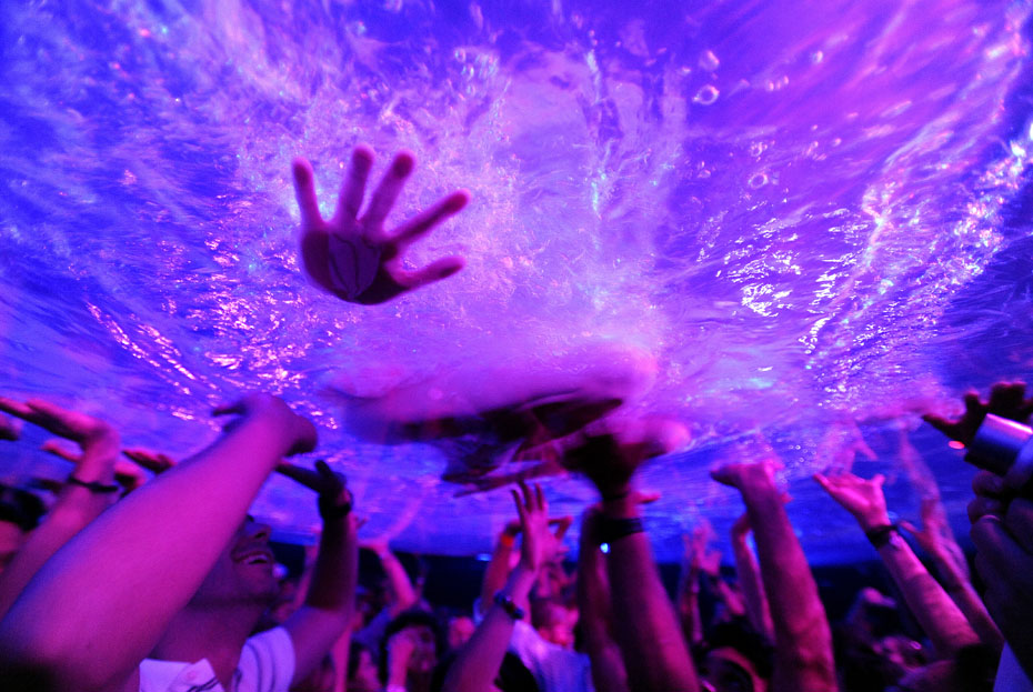 近日,阿根廷演員在加拉加斯舉行了一場名為“蠻力”水下演出,光怪陸離的燈光配合水中的演出吸引了大量觀眾到場觀看。圖片來源:中國新聞網(wǎng)