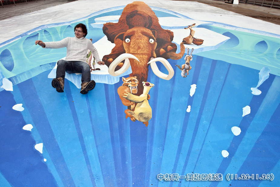 11月23日,德國(guó)街頭畫家埃德加·穆勒在英國(guó)倫敦一家購(gòu)物中心展示他以動(dòng)畫電影《冰河時(shí)代3》為主題創(chuàng)作的大型立體畫。這幅立體畫占地320平方米,創(chuàng)造了新的吉尼斯世界紀(jì)錄,給人們帶來(lái)妙趣橫生的視覺(jué)體驗(yàn)。圖片來(lái)源:中國(guó)新聞網(wǎng)>>點(diǎn)擊觀看詳細(xì)內(nèi)容