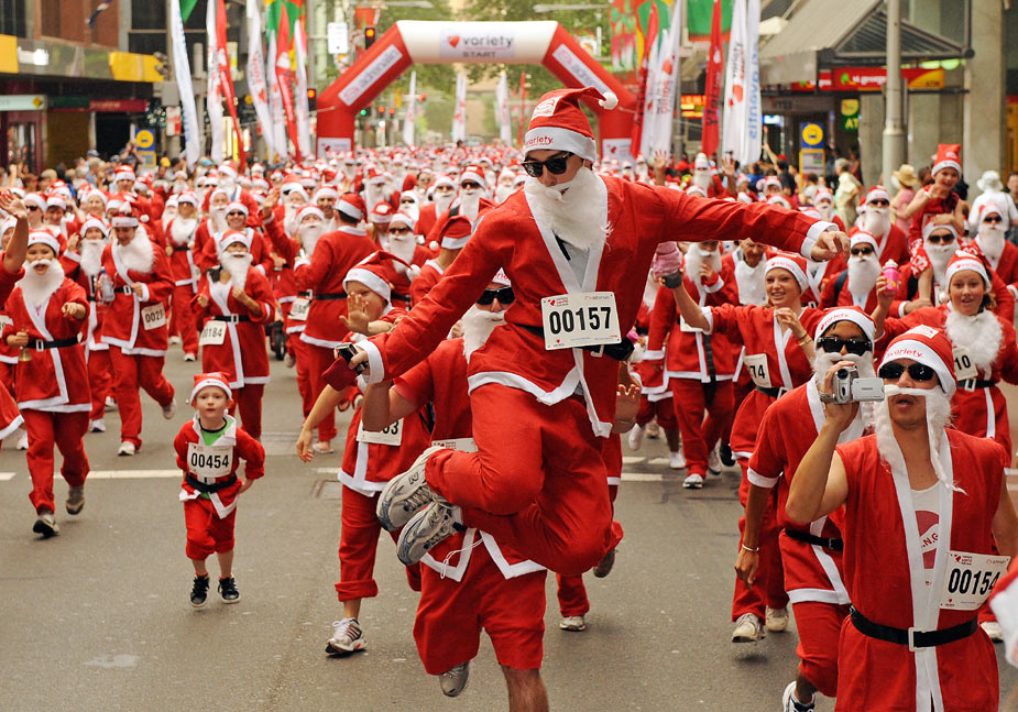 11月29日,在澳大利亞悉尼市中心,大約1800名“圣誕老人”參加群跑活動,迎接今年圣誕節(jié)的到來。