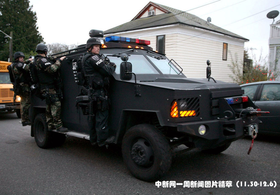 11月29日,美國4名警察在華盛頓州空軍基地附近一間咖啡館被兩名槍手槍擊,4人當場死亡。美國軍方派遣反恐特警小組展開大規(guī)模追查。圖片來源:中國新聞網(wǎng)