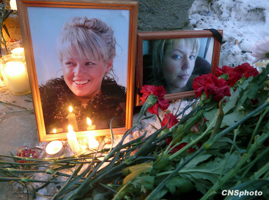 十二月六日,在俄羅斯彼爾姆市夜總會火災(zāi)事故現(xiàn)場,首次出現(xiàn)了遇難者的遺像。中新社發(fā) 田冰 攝