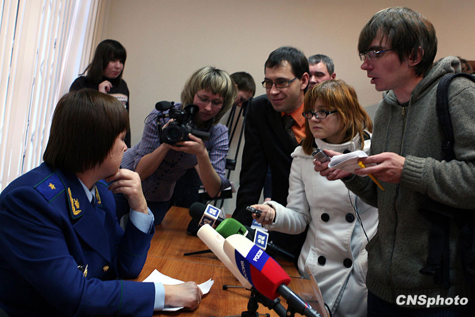 十二月六日,俄羅斯彼爾姆市夜總會火災事故的第二天,調查委員會負責人在舉行新聞發(fā)布會時遭到聚集在此的數(shù)十家媒體記者的“圍堵”發(fā)問。中新社發(fā) 田冰 攝