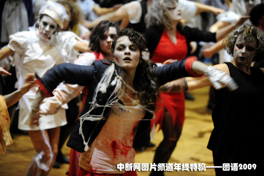 全世界最多人同時跳舞世界紀錄:10月25日,“戰(zhàn)栗全世界”活動在全球300多座城市同期舉行,全球一共有大約20000人同時跳起了邁克·杰克遜著名的戰(zhàn)栗舞。歌迷們借此表達了對這位流行音樂之王的哀思。并且刷新了全世界最多人同時跳舞的世界紀錄。圖為在法國的Gourin,歌迷跳起“戰(zhàn)栗舞”。圖片來源:中國新聞網(wǎng)