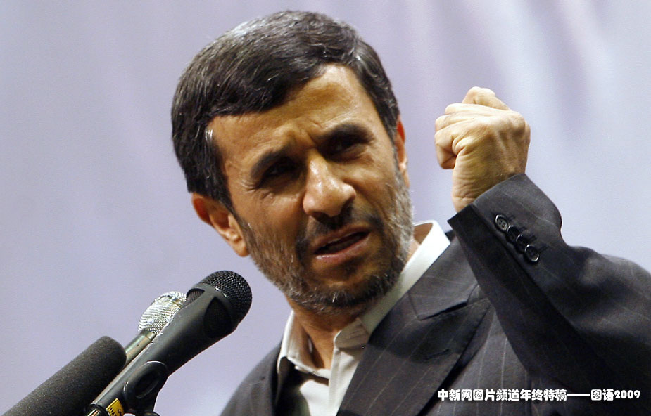 囂張的內(nèi)賈德:2009年6月27日伊朗總統(tǒng)內(nèi)賈德在出席德黑蘭舉行的司法會(huì)議時(shí)再次抨擊美國干涉。