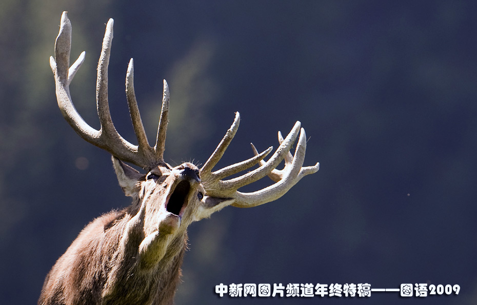 奧地利蒂羅爾州的一個(gè)野生動(dòng)物園內(nèi),一只發(fā)情的雄鹿在嘶吼。