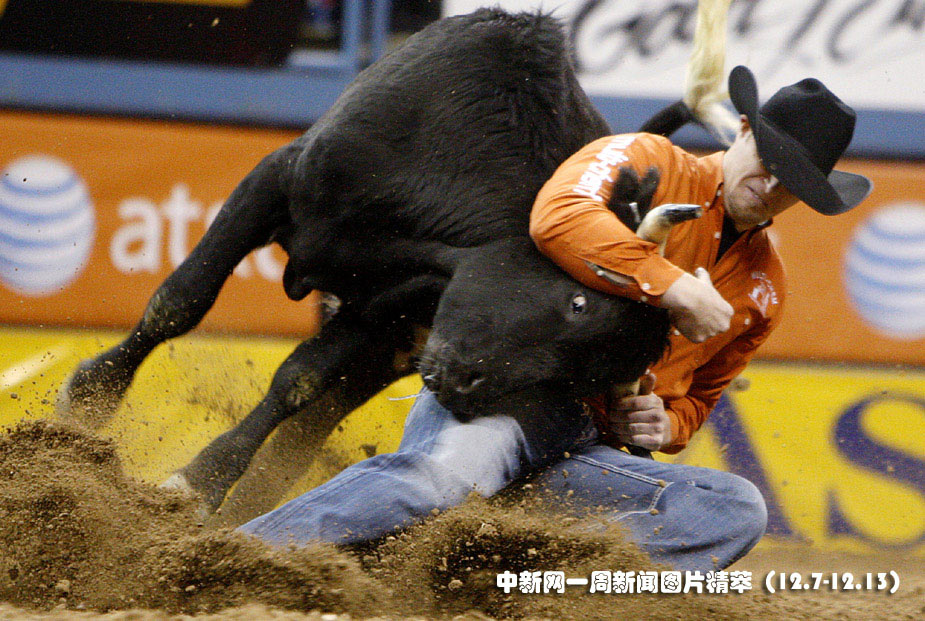 11日(周五),美國(guó)拉斯維加斯,一位全美斗牛競(jìng)技好手正在與公!八印。圖片來(lái)源:中國(guó)新聞網(wǎng)
