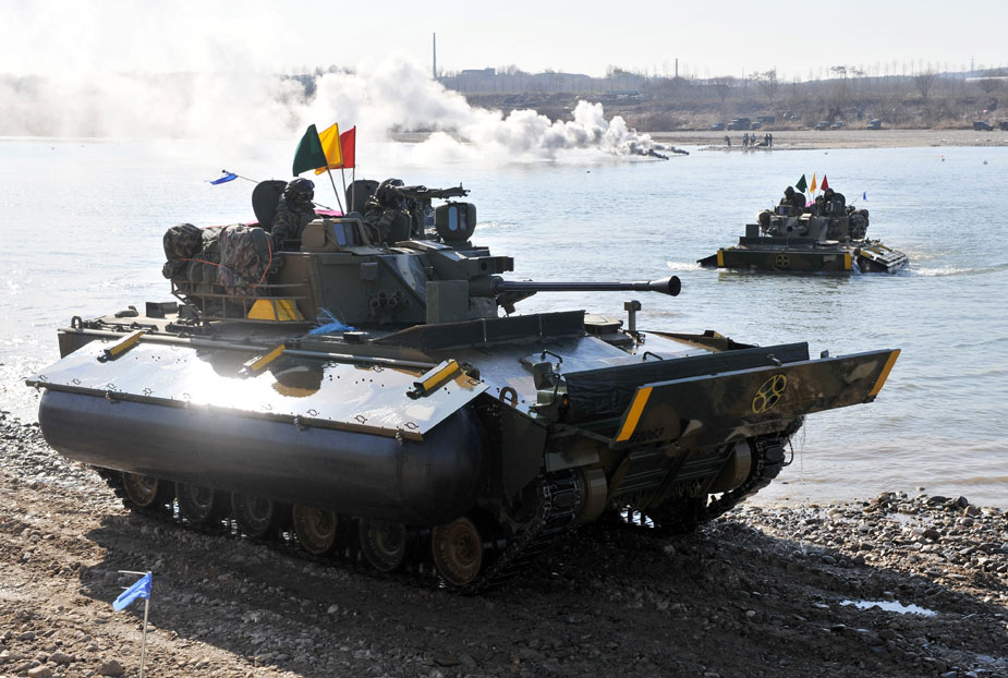 12月16日,韓國(guó)第20師團(tuán)機(jī)械化部隊(duì)在京畿道驪州南漢江一帶進(jìn)行大規(guī)模渡河實(shí)戰(zhàn)訓(xùn)練。該訓(xùn)練以培養(yǎng)戰(zhàn)斗執(zhí)行能力為重點(diǎn)。圖片來(lái)源:中國(guó)新聞網(wǎng)