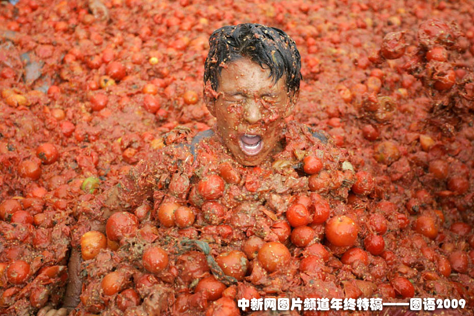 哥倫比亞舉辦“番茄狂歡節(jié)”——6月14日,哥倫比亞在首都波哥大東北部的蘇塔馬錢小鎮(zhèn)舉行一年一度的“番茄狂歡節(jié)”,互不相識的人們互相投擲番茄慶祝節(jié)日。