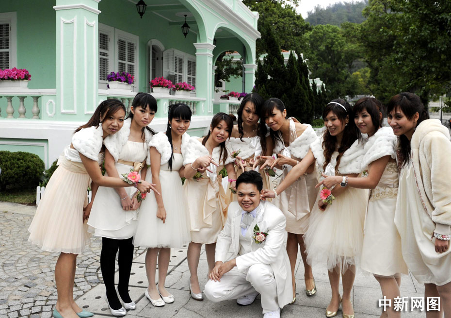 澳門(mén)凼仔,新人的俏皮婚禮。中新社記者 廖攀 攝