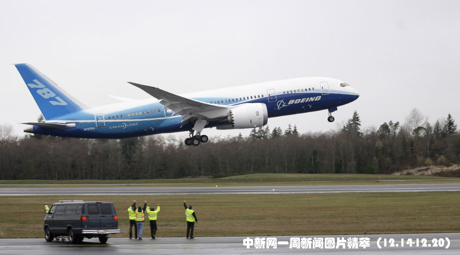 15日(周二),美國波音公司最新夢幻客機波音787終于在華盛頓州升空試飛,兩萬五千多人忍受寒冷觀看了試飛過程。圖片來源:中國新聞網(wǎng)