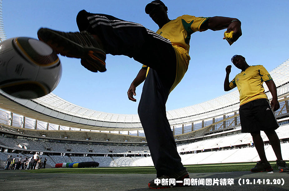 南非開(kāi)普敦的新體育場(chǎng)竣工儀式在14日(周一)舉行,圖為球迷們?cè)趦x式上進(jìn)行表演。該體育場(chǎng)是為明年南非足球世界杯而建,可容納6.8萬(wàn)名觀眾。圖片來(lái)源:中國(guó)新聞網(wǎng)