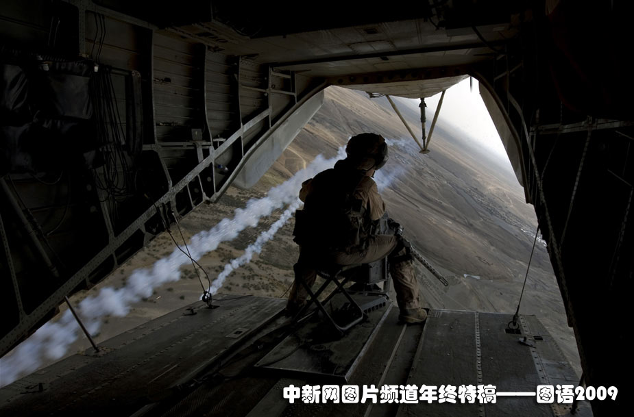 2009年9月18日,一架CH—53直升機(jī)在阿富汗南部被擊中后試圖著陸。