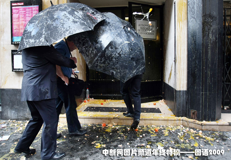 2009年5月7日,法國(guó)一家上市公司的員工聚集在公司門前向公司股東投擲雞蛋,起因是近日股東通過(guò)的財(cái)務(wù)決議并沒(méi)有滿足員工的要求。