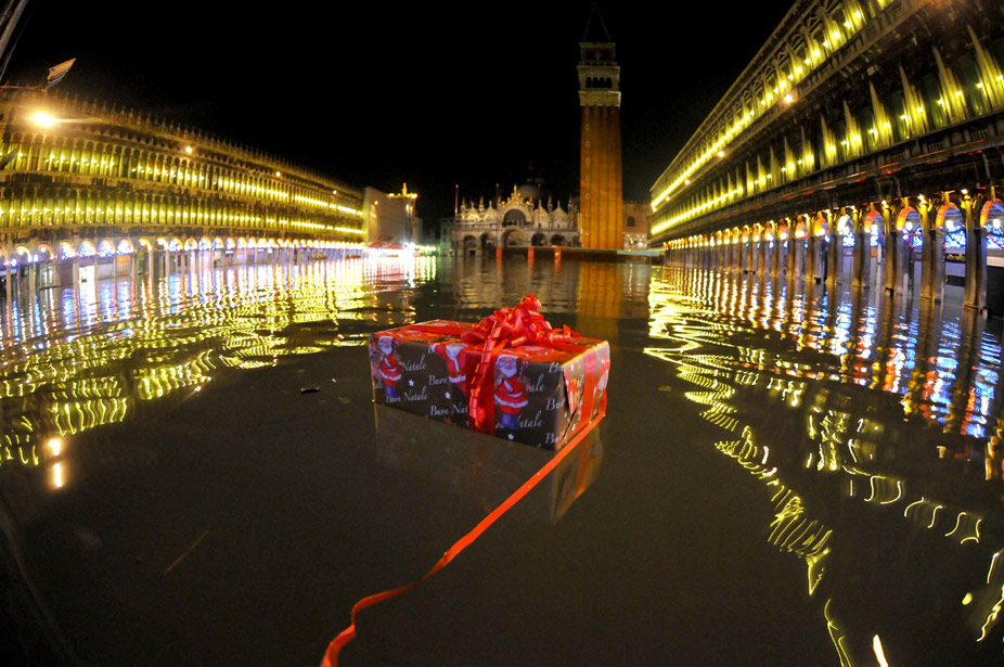 12月25日,意大利水城威尼斯圣馬可廣場被洪水浸泡。自從11月份以來,水城威尼斯受潮汐和一股強(qiáng)烈的熱帶風(fēng)暴影響屢遭洪水“淹沒”。