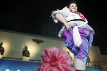 12月19日,在日本東京一家劇院,身著圣誕老人服裝的退役的奧運(yùn)會(huì)選手參加“肌肉音樂劇”預(yù)演,展示其過人的身體素質(zhì)與運(yùn)動(dòng)技巧。圖片來源:中國(guó)新聞網(wǎng)>>點(diǎn)擊觀看詳細(xì)內(nèi)容
