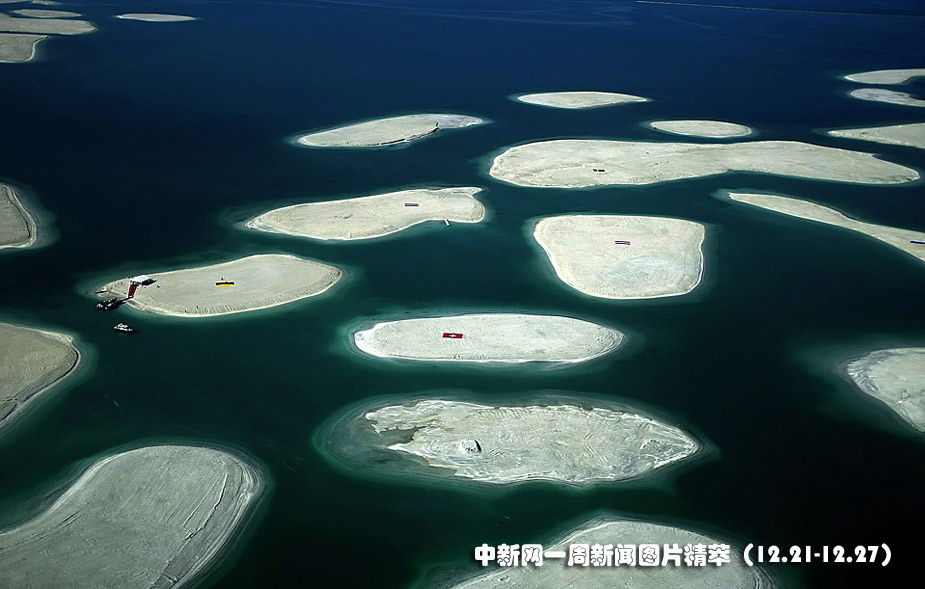 21日(周一)拍攝的這張鳥(niǎo)瞰圖展示出迪拜海岸邊名為“世界”的人造島群。