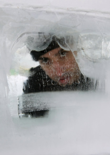 當(dāng)?shù)貢r間29日早上8點起,以色列魔術(shù)師赫齊·達(dá)揚(yáng)在位于特拉維夫的拉賓廣場上,達(dá)揚(yáng)赤身進(jìn)入一塊8噸重的冰塊里,開始了挑戰(zhàn)冰屋生存世界紀(jì)錄之旅。圖片來源:中國新聞網(wǎng)