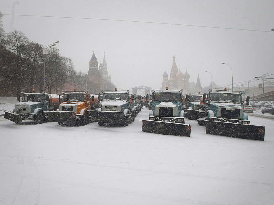 圖為12月29日,俄羅斯莫斯科紅場上除雪車在進行除雪作業(yè)。