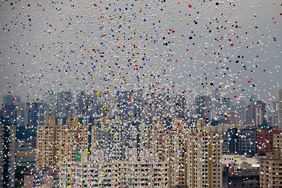 圖為12月31日,巴西人在圣保羅放飛可以分解的氣球,迎接新年的到來。