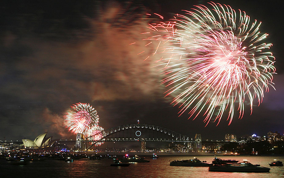 圖為12月31日,絢麗的煙花與悉尼灣大橋和悉尼歌劇院交相輝映。澳大利亞悉尼市當晚舉行焰火表演,迎接即將到來的新年。