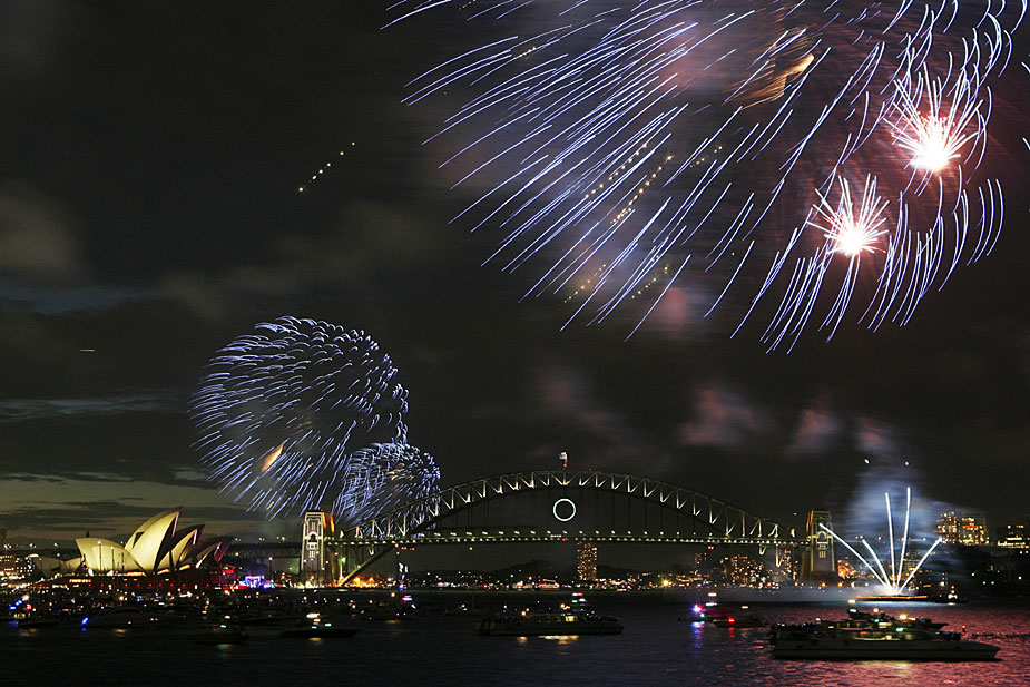 圖為12月31日,絢麗的煙花與悉尼灣大橋和悉尼歌劇院交相輝映。澳大利亞悉尼市當(dāng)晚舉行焰火表演,迎接即將到來的新年。