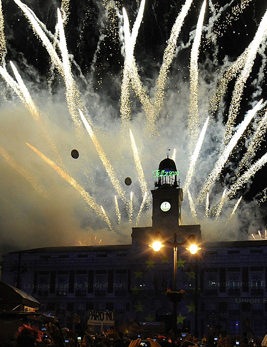 圖為2010年1月1日,西班牙首都馬德里舉行了煙花表演。