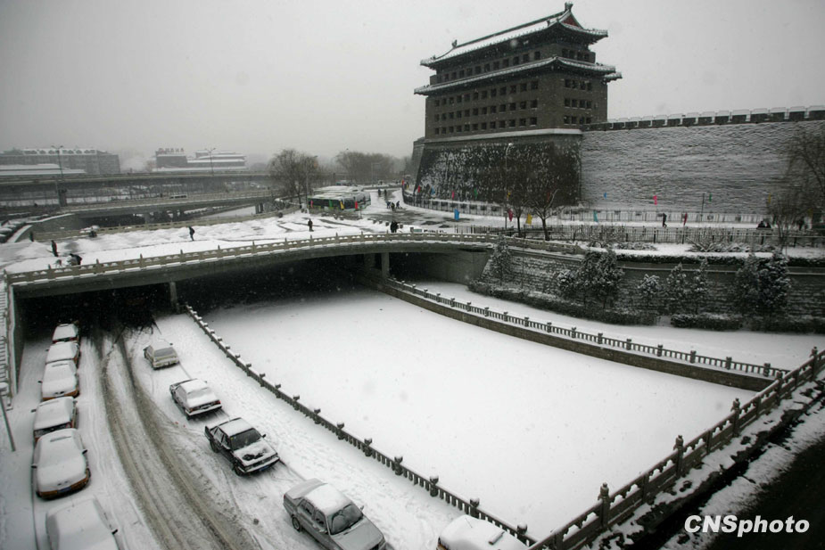 1月3日,北京城降下大雪,積雪深達(dá)6厘米,預(yù)計(jì)雪花會(huì)飄灑一整天。天氣預(yù)報(bào)稱,北京地區(qū)的氣溫有可能達(dá)到-16℃,從而逼近40年來(lái)的歷史低溫極值。圖片來(lái)源:中國(guó)新聞網(wǎng)