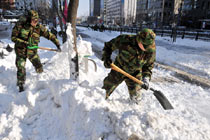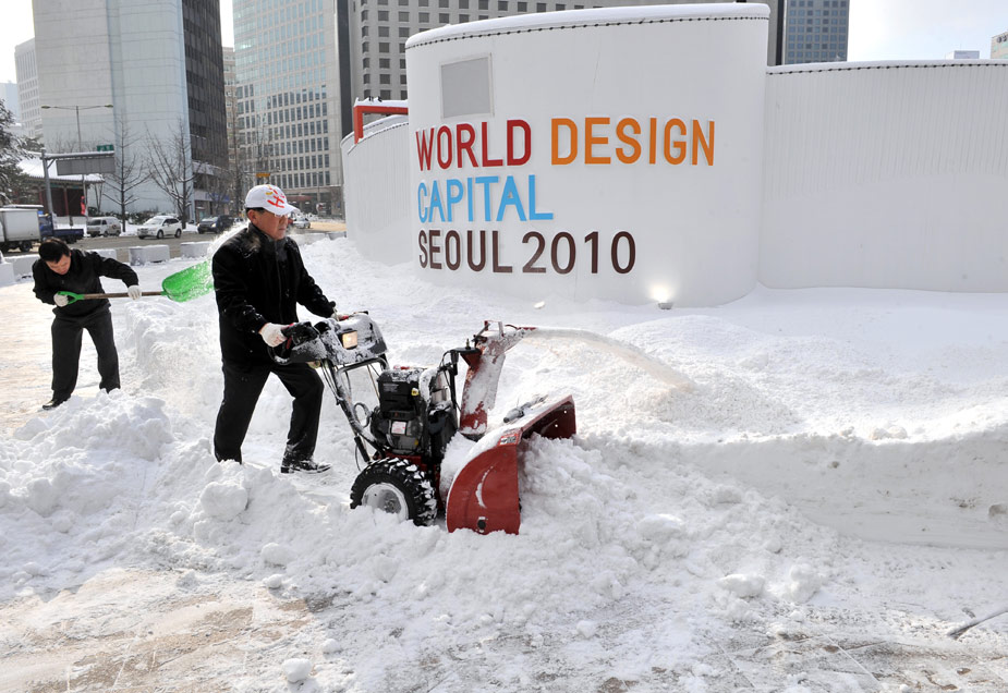 四日,韓國大部分地區(qū)遭遇大雪。至下午二時(shí)左右,首爾地區(qū)積雪厚度超過二十八厘米,這是韓國自一九三七年開始進(jìn)行積雪量觀測(cè)以來的最新紀(jì)錄。圖為1月5日,民眾在街頭除雪。