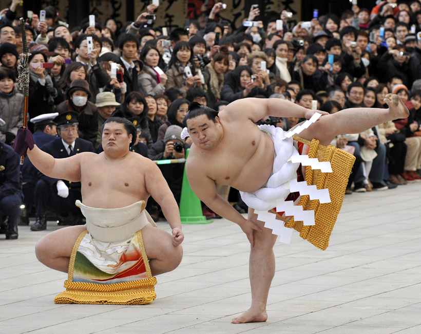 1月6日,日本舉行了傳統(tǒng)的相撲表演迎新年活動(dòng)。