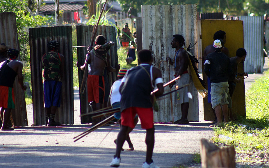 1月6日,印尼巴布省的兩個村落因債務問題引發(fā)了武裝爭斗,雙方手持弓箭等原始武器進行了一場原始的戰(zhàn)爭。目前,這場沖突已經(jīng)造成多人傷亡。圖片來源:中國新聞網(wǎng)