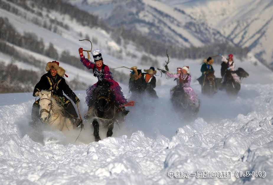 新年伊始,新疆布爾津縣喀納斯景區(qū)哈薩克族牧民在雪中表演傳統(tǒng)節(jié)目——姑娘追。圖片來源:中國新聞網(wǎng)>>點擊觀看詳細內容
