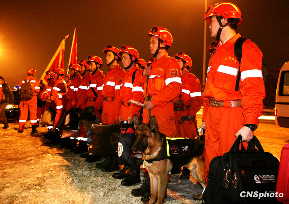 1月13日晚,中國(guó)國(guó)際救援隊(duì)從首都國(guó)際機(jī)場(chǎng)搭乘飛赴海地執(zhí)行救援任務(wù)。據(jù)悉,救援隊(duì)一行共計(jì)68人,由三個(gè)分隊(duì)組成,包括來(lái)自國(guó)家地震局的10人專家分隊(duì)等。據(jù)了解,救援隊(duì)隨機(jī)攜帶了總價(jià)值約1200萬(wàn)元人民幣的10余噸救災(zāi)物資,其中包括救援、通訊、后勤保障、醫(yī)療、食品在內(nèi)等物資設(shè)備和三只搜救犬。中新社發(fā) 雷虹 攝