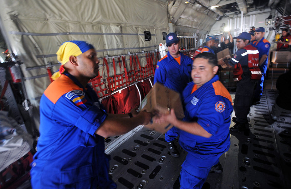 圖為委內(nèi)瑞拉救援物資正在緊張裝備中。海地發(fā)生強(qiáng)烈地震,傷亡慘重,國(guó)際社會(huì)在第一時(shí)間紛紛伸出援手。中國(guó)、美國(guó)、法國(guó)等多個(gè)國(guó)家和地區(qū)的救援隊(duì)已集結(jié)完畢,奔赴海地地震災(zāi)區(qū)。圖片來(lái)源:中國(guó)新聞網(wǎng)