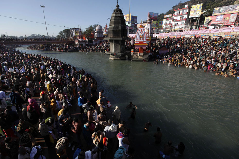 1月14日,數(shù)千名印度教信徒前往恒河參加世界上最大的宗教集會大壺節(jié),并在印度圣河——恒河進行了沐浴儀式。圖片來源:中國新聞網(wǎng)