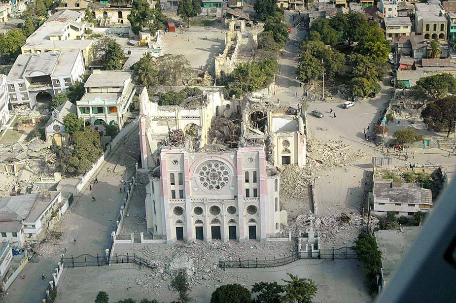 當?shù)貢r間2010年1月14日,海地太子港,在地震中倒塌的教堂。