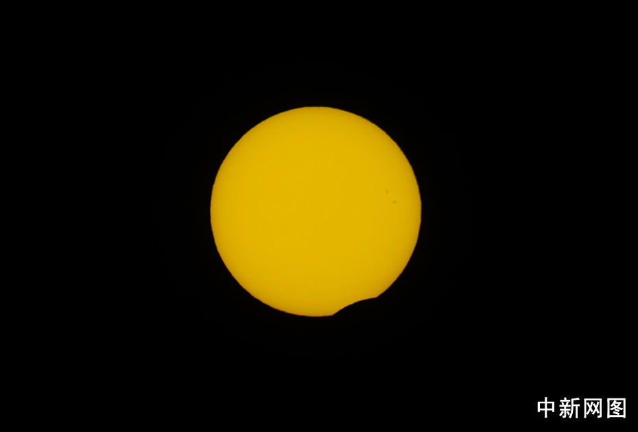圖為北京時間15:35拍攝到的太陽。中新網(wǎng)記者 金碩 攝